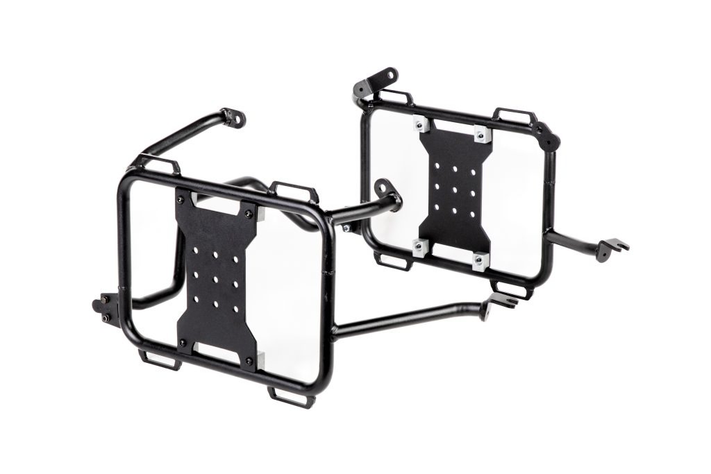 The Outback Motortek X-Frame racks for the Suzuki V-Strom 800 and 800DE are the most universal and functional side pannier frames yet, allowing simple, secure mounting of hard panniers and soft luggage as well as some accessories. We also offer Standard pannier racks. The difference between our standard pannier racks and the X-Frames is that the standard frames don’t feature the X-Bracket mounts and tabs welded on all four corners.
