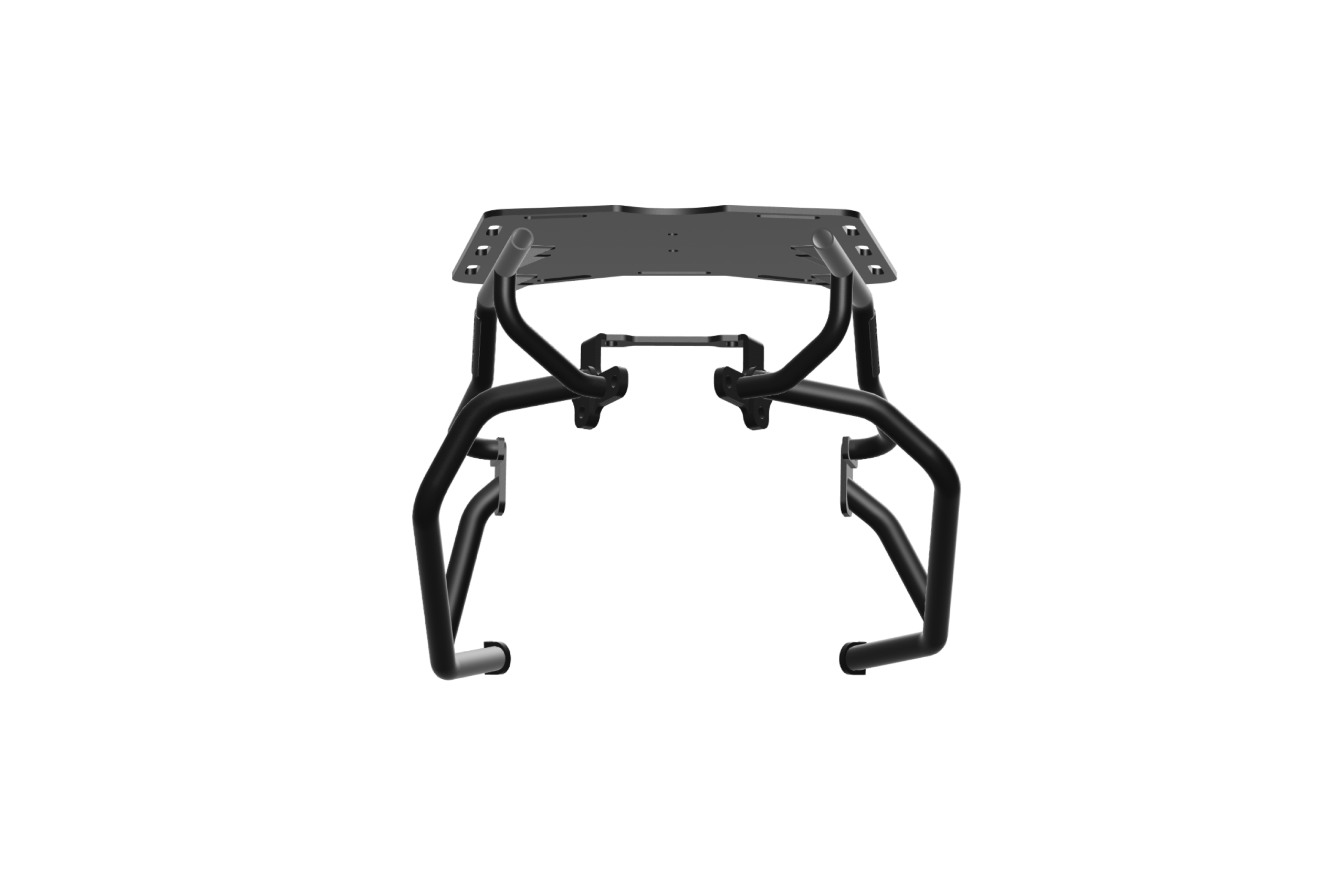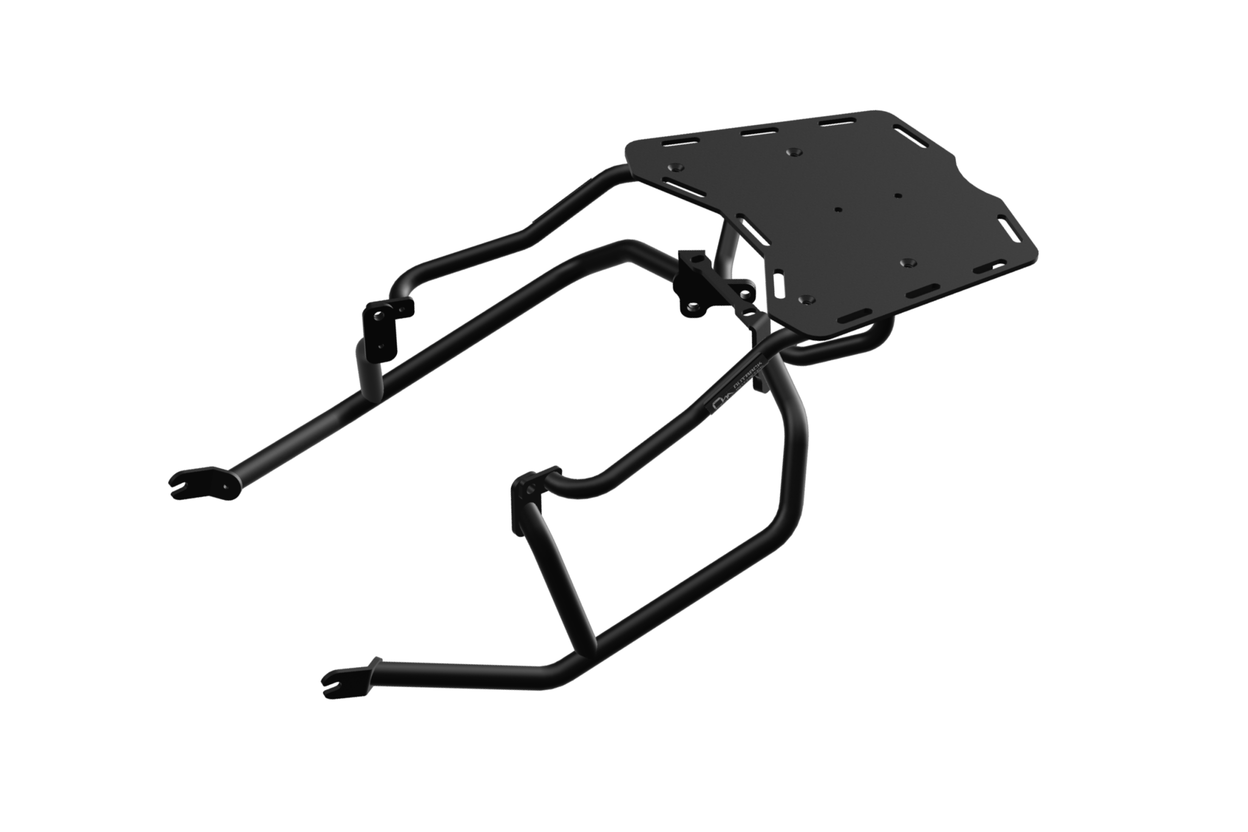 A simple and lightweight side luggage support, designed to hold your soft luggage and keep it from bouncing and folding under your seat, and coming in contact with the rear wheel or the exhaust, on your F 900 GS.