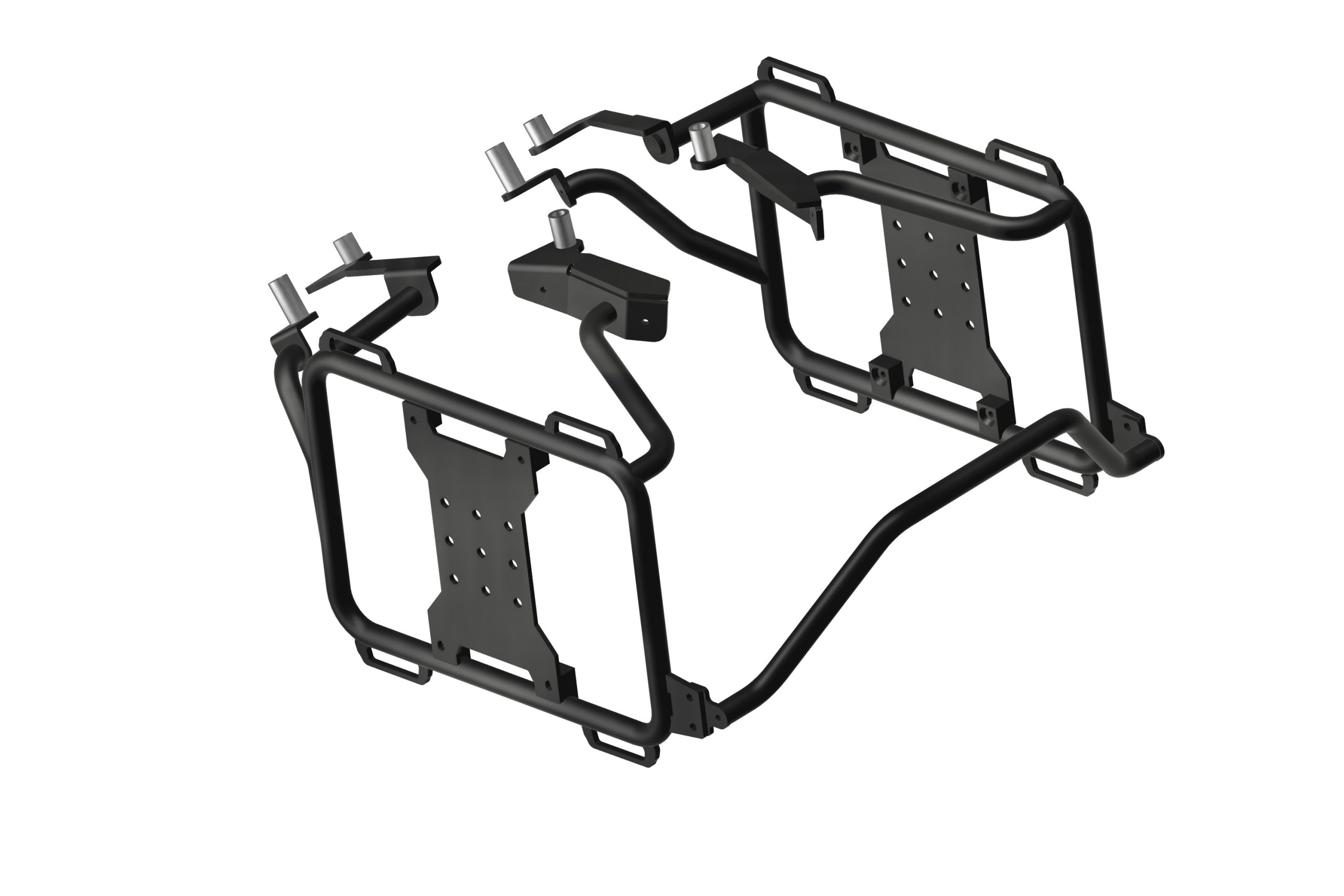 Our pannier racks are constructed of mild steel which is what makes them robust enough to hold your luggage and absorb impact from drops and tip overs if things go south! Additionally, they have standardised dimensions (350mm [L] x 250 [H] made of 18mm diameter tubing) which gives you the option of mounting a wide range of panniers. The pannier racks for the R 12 G/S are available with an asymmetrical design that spans 50cm in length once installed!