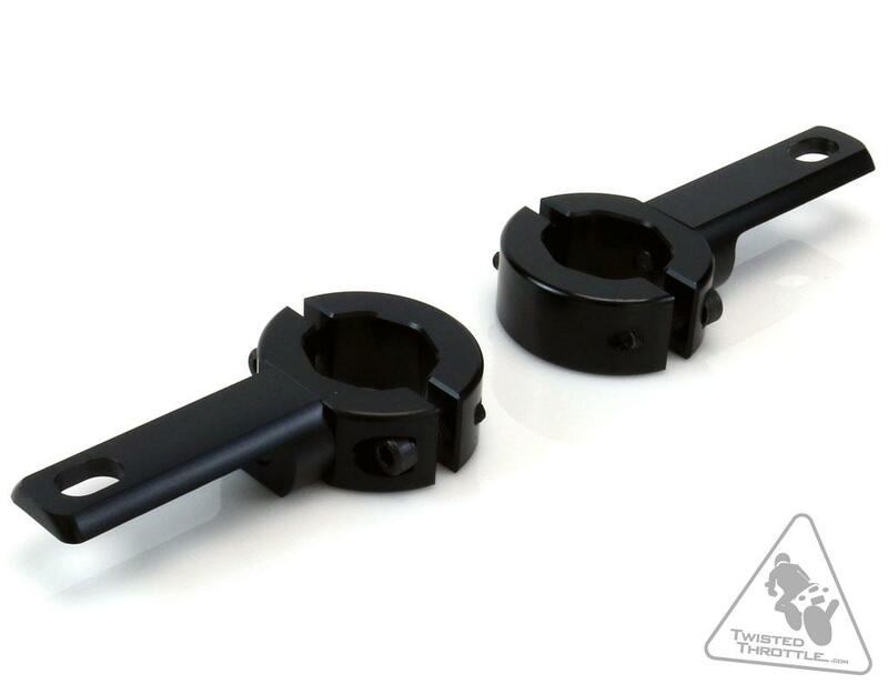 Ces brides sont destinées au montage des éclairages sur les protections moteur d’origine ou de remplacement que l’on trouve couramment sur les cruisers et les motos standard. Les brides permettent de positionner la lumière à l’intérieur des protections moteur, assurant ainsi une protection en cas de chute. Les brides sont également parfaitement dimensionnées pour s’adapter aux tubes du cadre afin d’obtenir une installation propre et peu encombrante.